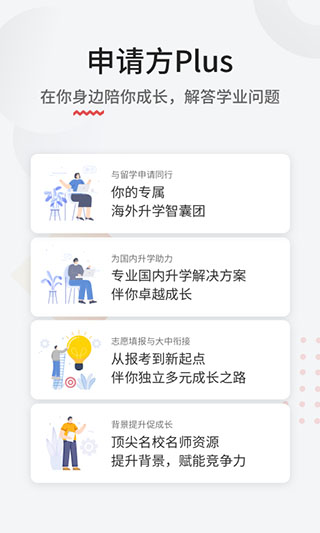在升学的道路上,大家是不是有点迷茫呢?别怕,申请方app可以为失去方向的你指点迷津,无论你是高中生还是大学生,无论你正面临高考报考、出国留学申请还是国内考研就业,都可以帮你解决升学道路上的一切问题。它是平方创想教育科技(北京)有限公司官方打造的一款app,在这里你可以获取学业资讯以及升学资源,不管是国内升学、本科留学 、大学成长、硕博留学、工作创业都可以获取详细的内容,并且还可以为你提供个性化帮助更好规划成长。此外该平台还提供评测可以为你制定学业规划,甚至还可以获取学业职业的机会资源,助力学生实现梦想,申请方手机版在你身边陪你长成。