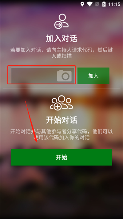 2、开始对话并与其他参与者分享代码,他们就可以通过该代码加入你的对话,这个时候只需要你点击“开始”。