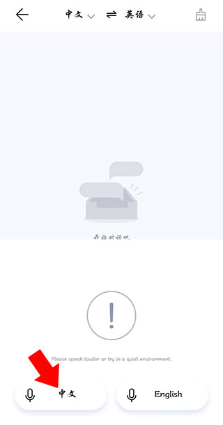 4、反过来,当需要将目标语音翻译为源语言时,在对方说话时点击右方按钮即可