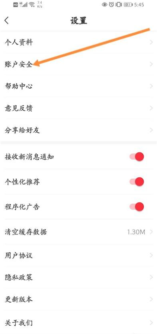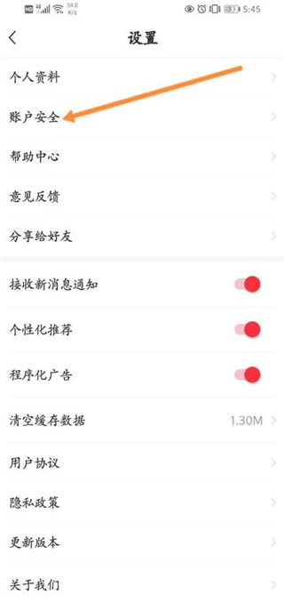 3、然后点击账户安全。