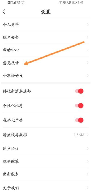 3、然后点击意见反馈。