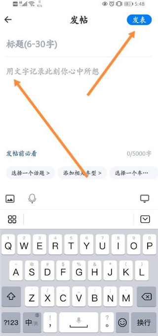 4、最后输入话题内容,点击发表即可。