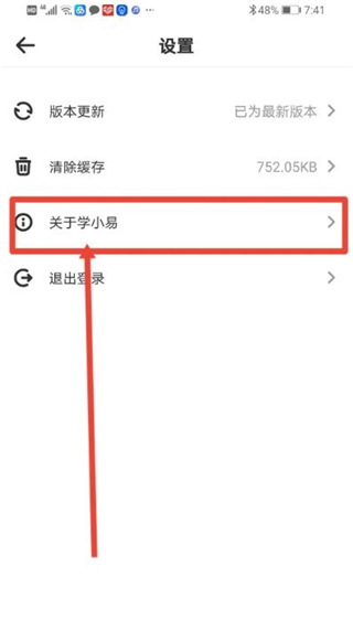 在设置页面点击【关于学小易】。
