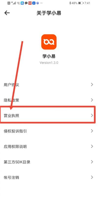 学小易app怎么查看营业执照