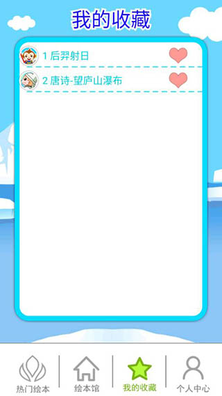 1、在观看绘本或者是唐诗宋词时,右上角有一个爱心,点击就收藏成功;