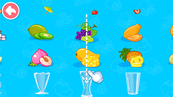 3、以果汁铺子为例,进来之后,我们要制作果汁给顾客,按照箭头方向滑动就可以制作好一杯果汁;
