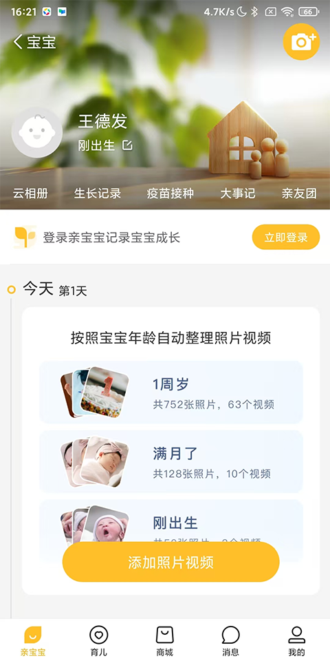 一人上传全家共享,内容长久保存不丢失,专注记录宝宝成长所需,千万家庭放心之选。亲宝宝——记录成长,科学育儿。