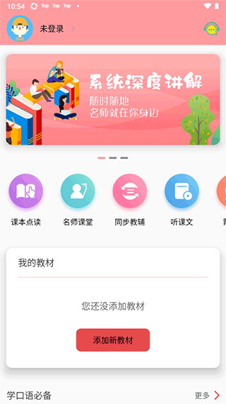 2、可以根据自己的学习水平添加对应的教材,点击首页中间的添加新教材。