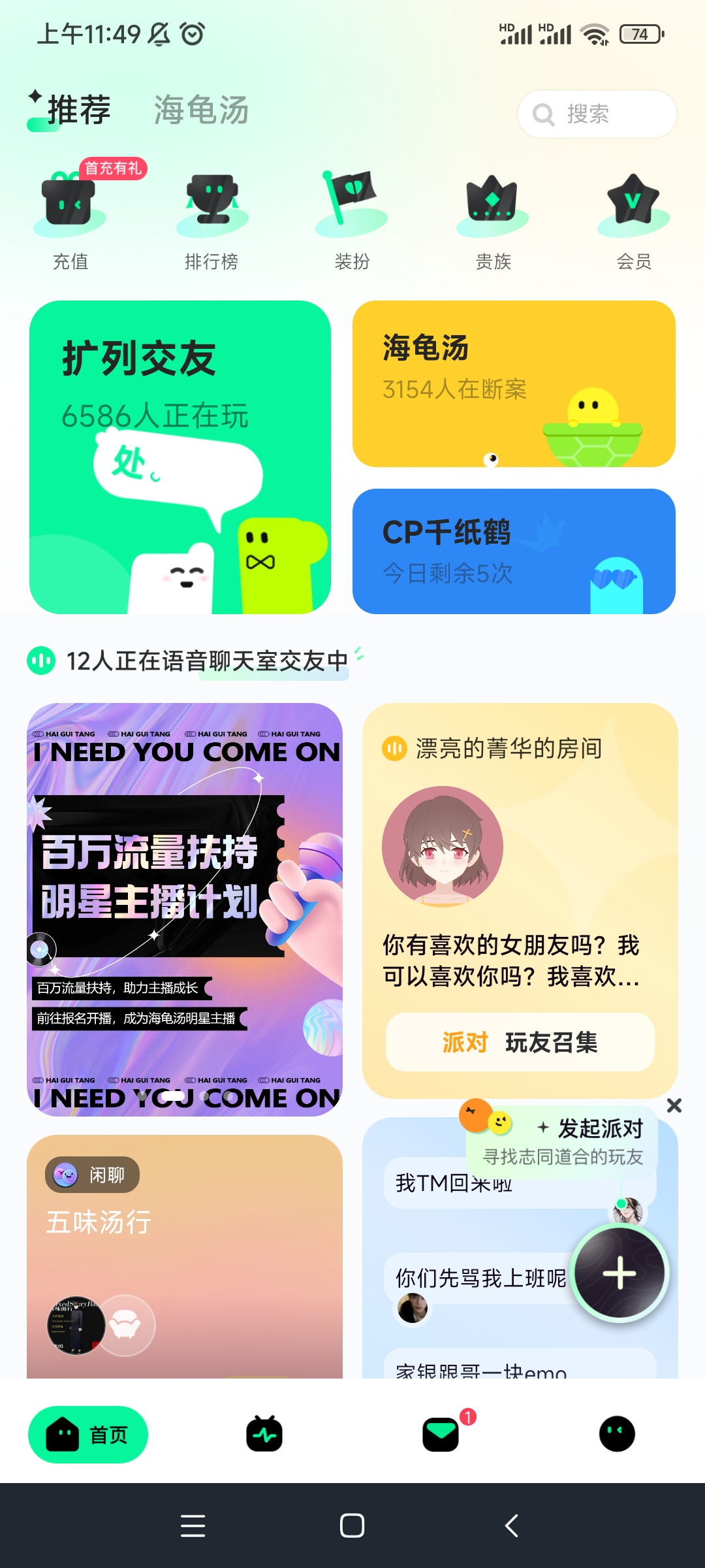 海量高颜值大神在线,语音聊天、点唱娱乐、连麦游戏,遇见温暖陪伴,今晚不孤单。