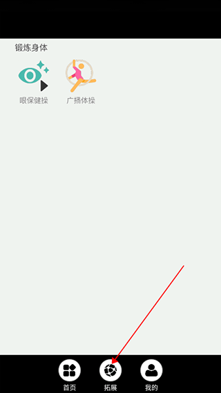 3、点击下方拓展,可以进行眼保健操和广播体操运动