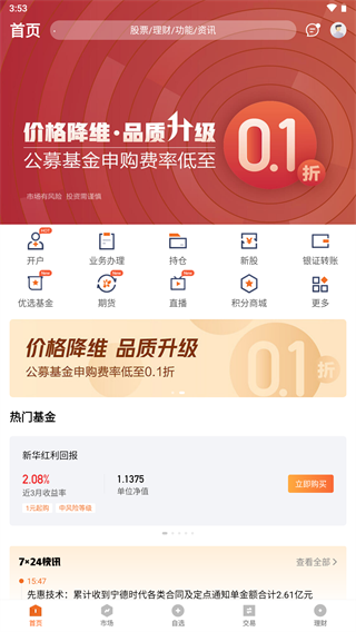3分钟快速开户,新客户专享理财券,沪深A股/基金账户一步到位;