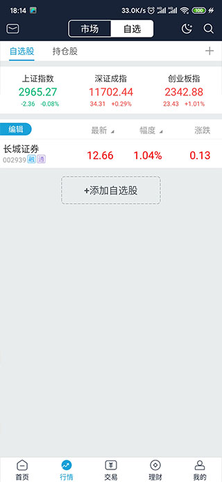 1、自选股:查看自选股的最新走势,当前价格以及涨幅等信息,还能随时进行编辑2、行情:最新的股票证券行情信息