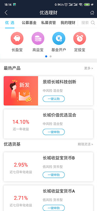 5、在理财板块中有着基金开户、高益宝等多种产品,同时能够轻松理财,低风险: