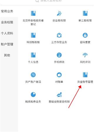 4、点击资金账号管理,然后点击绑定银行卡即可。