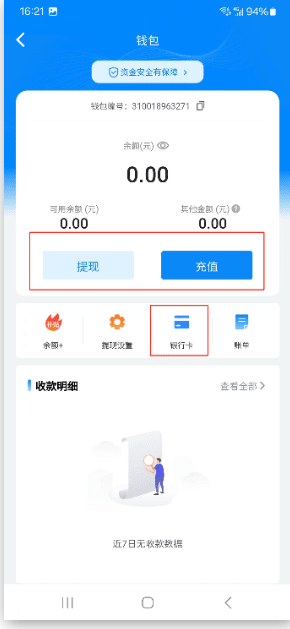 *【钱包】页面点击银行卡可进行银行卡绑定,绑定的银行卡可用于充值、提现
