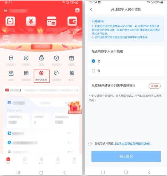 支持开通数币交易功能或查看数币收款数据汇总