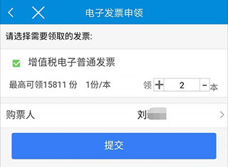以上信息选择完成后,点击【提交】按钮提交领购申请。