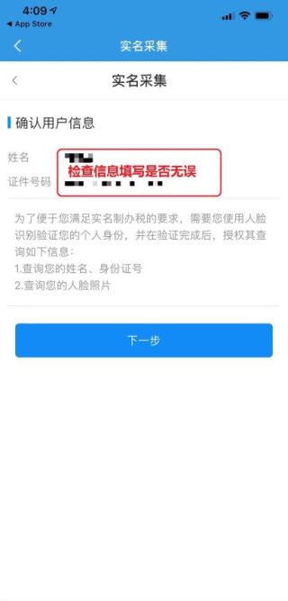 5、在确认用户信息界面确认上一步输入信息是否无误,点击“下一步”