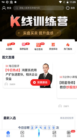1、打开汇炒股app,进入首页,选择相关功能使用