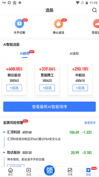 汇炒股软件是专门为广大股民用户专门打造的选股、诊股类软件,主要面对一些初入股市的小散用户,提供股票市场行情资讯以及参考指标,依托大数据技术为用户来挑选优质股票,从而让用户得到可得的股票红利。与此同时,该软件还十分注重对用户需求的专业化、精细化、个性化服务,力求给每一用户量身打造出一套股票理财方案。有需要的欢迎来下载!