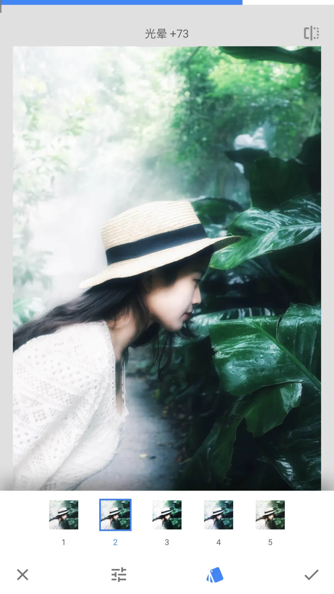 晕影:主要作用是增加照片的暗角,让画面的中间主体景物部分更加明亮,在一些暗调的照片中增加适当的暗角能够增强画面的氛围和主题,使用两个手指滑动画面即可调整晕影的范围。