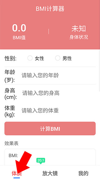1、下载并打开享读,点击下方的体质即可来到体质计算界面