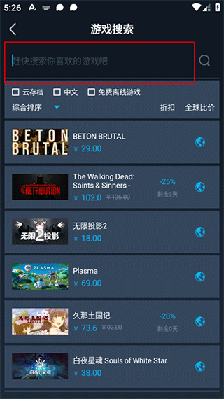 1、在首页界面可以查看免费游玩的游戏,游戏榜单,游戏折扣和可使用存档的游戏等