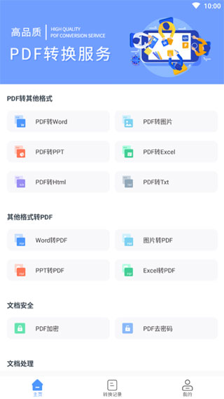 1、支持PDF、Wps Office、图片、表格、doc、电子书等多种格式文件互相转换;2、PDF转其他:手机PDF转Word、PDF转图片、PDF转PPT、PDF转Excel、PDF转HTML、PDF转TXT格式等;