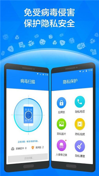 1、使用最新的防病毒数据库扫描病毒,恶意软件,间谍软件和特洛伊木马2、自动从Android手机和平板电脑中进行病毒检测和病毒清除