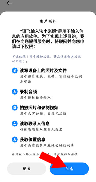 7、授权后,进入讯飞输入法小米定制版设置界面,我们返回桌面点击任意输入框即可测试是否启用成功