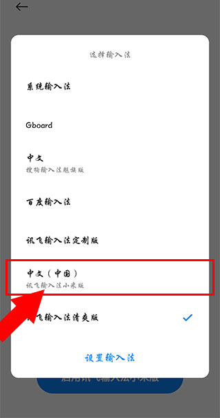 5、然后在弹出的选择框中选择讯飞输入法小米版,如下图