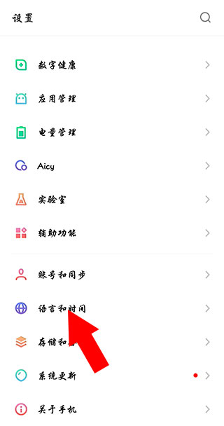 2、在设置界面中找到并点击“语言”选项,每个系统可能选项名字不同,有语言关键字点击看看即可