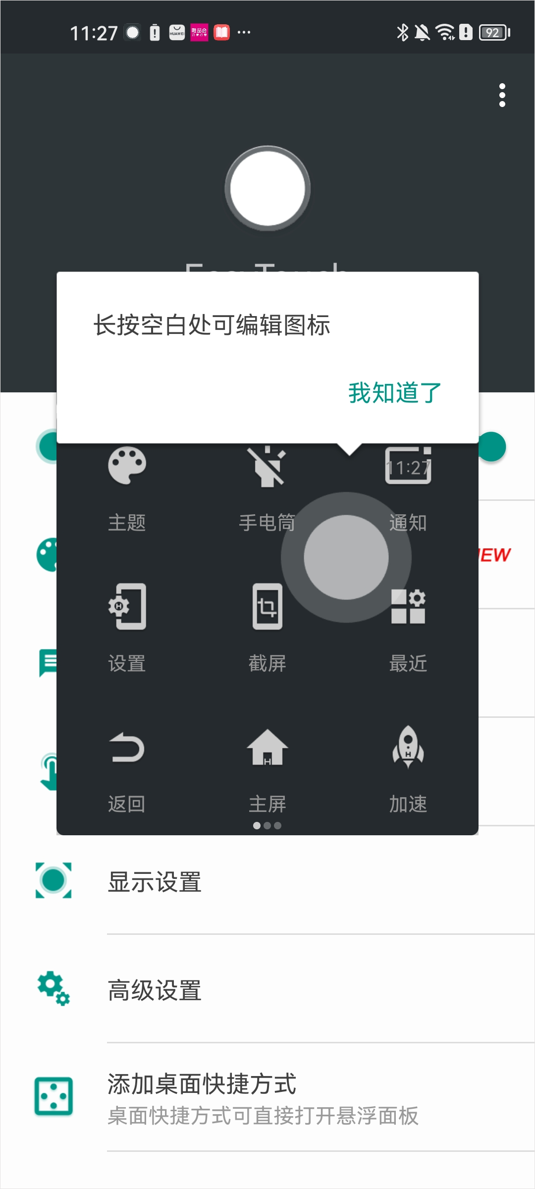 检查手机权限设置,确保EasyTouch已被授权运行,并且没有设置自动弹出等敏感权限。