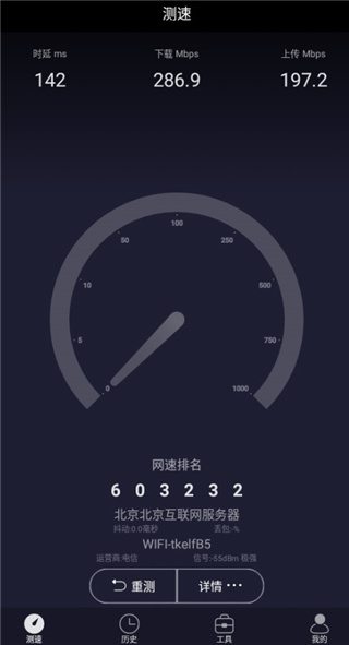2、查看历史:方便查看您的测速历史,比较每次测试结果;