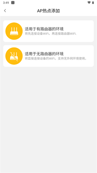 5、AP热点添加有两种添加方式,有路由器的环境下与无路由器的环境下。如果你家没有路由器的话可以选择无路由器环境,有路由情况下选择有路由器环境。