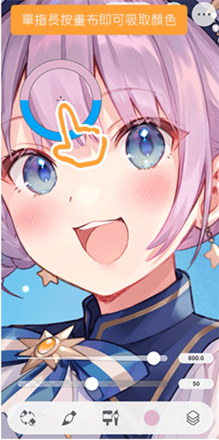 如果不希望在长按时工具被切换为吸管,请开启[环境设定],把[以一指长按来使用吸管]设定为关闭。