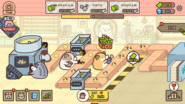 对于游戏当中玩家的玩法就是通过其中所收集的金来进行扩展我们整体的点心制作的流水线,当然这个也是根据每个关卡的实际情况来进行扩展,所以每一次的区别性还是包括在其中的,并且在每一个关卡的上方都会有不同的任务来给玩家目标,进行完成之后来领取奖励,基本所拥有的奖励都会帮助玩家所进行抽奖,获得新的松鼠或者重复的碎片,进行游戏当中所有仓鼠方面的养成提升,所以玩家要对于他们的等级和评价的星级来进行提升,对于我们来说的话,也会拥有额外的加成和一些结算的时间提高,这些在松鼠方面也会拥有更加明显的表现,玩家也将会利用这种方式逐渐对于后续的发展降低难度,虽然是这样说,但是实际游戏其中最难以完成的目标就是通过收集金钱来达成最后的收益,或者是通过购买流水线的方式来进行金钱的消耗,在游戏后期对于金钱的消耗所要求的数量会逐渐提高,对于玩家每次挂机和经营的过程也将会更加长久。