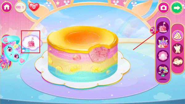 3、点击独角兽客人想品尝的蛋糕进入制作页面,拖动制作原料放入碗中。
