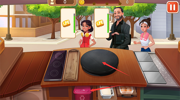 9、进度超时煎饼就会糊,需要点击煎饼两下,扔入垃圾桶