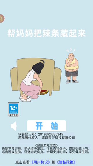 这款游戏叫《帮妈妈把辣条藏起来》,听起来有点搞笑。游戏里有个小胖子特别爱吃辣条,吃太多变胖了,玩家得帮他妈妈把辣条藏好,不让小胖找到。玩法挺有意思的,每次都要换地方藏,不然小胖就会找出来。游戏有30关,每一关都有不同的挑战,比如第一关要用地毯盖住辣条,第二关就得把辣条放进抽屉里。