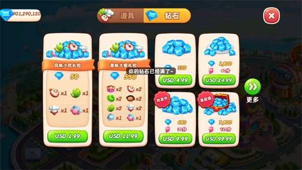 小镇大厨主要流通两种游戏货币。金币和钻石。