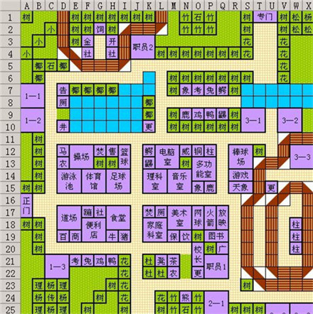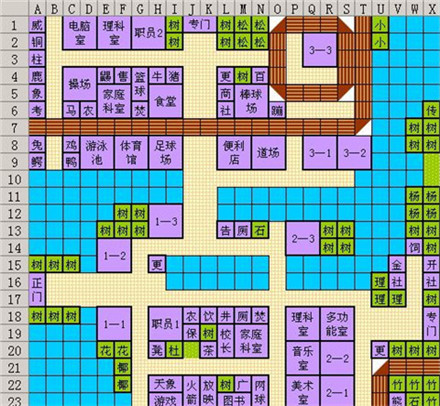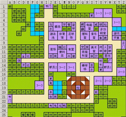 家用游戏机部:理科教室+长椅+长颈鹿小屋+白杨+映山红
