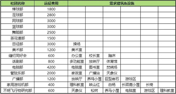 2.除了这些设施,还有社团需要通过某些条件去解锁。