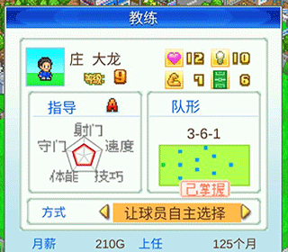 比赛的阵型。可以用喜欢的队形进行比赛。年末替换教练的话,队形有可能会增加。