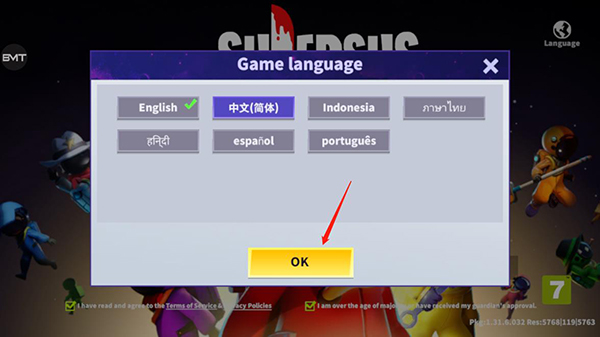 1、进入游戏后点击右上角的语言设置;