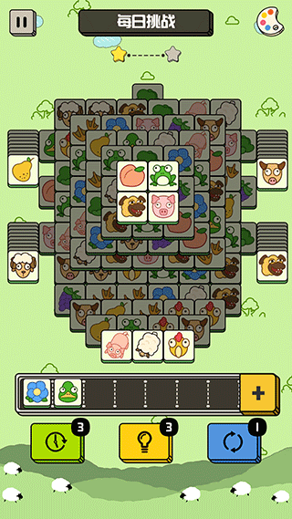 1、点击将3个相同的方块匹配到一起即可消除,当场上所有方块被消除,就算过关啦!