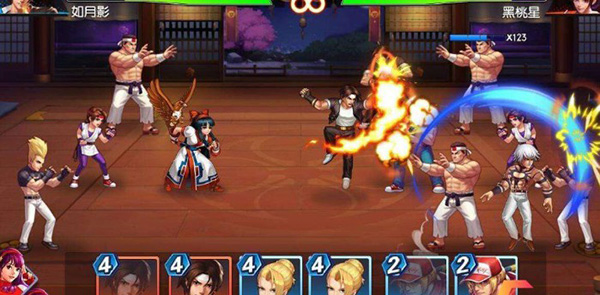 喜欢打特效技能的旁友可以尝试走一波灼烧流,需要的英雄有舞,草薙京,草薙菜舟,李烈火,八神和酒鬼。