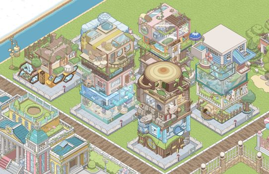 玩家的城市、家族里的家园院子,家园室内,玩家都可以自己diy。无论是一条马路、一张椅子、乃至一棵草,都需要玩家自己搭建,你可以造出一个婚礼场地,还可以造一个森林派对,甚至一个冰雪世界都是可以的,广阔的世界地图能满足你的需求。装饰无论是海洋风、还是爱丽丝风等等都应有尽有。