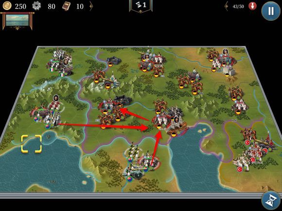 同时,威尼斯下方红圈可以出大学,在威尼斯用爆破打米兰的大要塞,利用好知识这个资源。