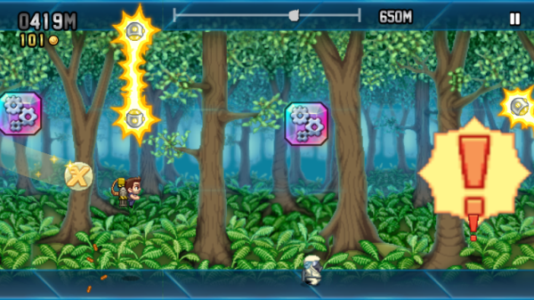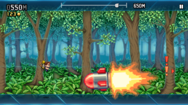 4、拾取金币,并需要注意,当屏幕出现感叹号时,意味着导弹即将来袭